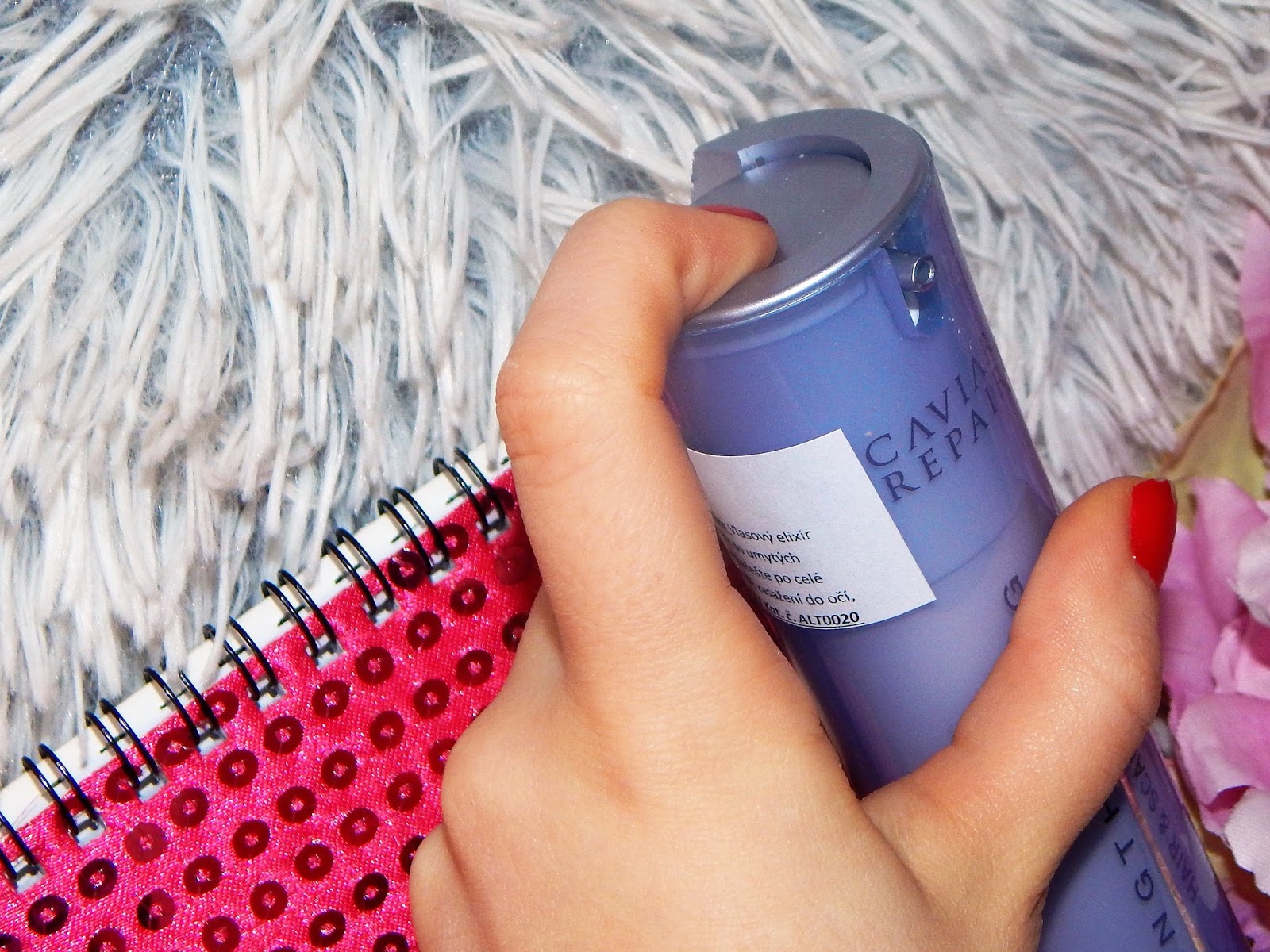 Samotný elixír je průhledné barvy a konzistence je spíše gelová s maličko olejovou strukturou, ale rozhodně není mastný či lepivý. Aplikace je velmi rychlá a jednoduchá. Malé zrnko hrachu vmasíruji vždy do umytých, ručníkem vysušených vlasů a kartáček rozčešu do celé délky. Žádné oplachování! Po rozčesání můžeš pokračovat ve stylingu vlasů, tak jak jsi zvyklá z předešlé péče o tvé vlasy.