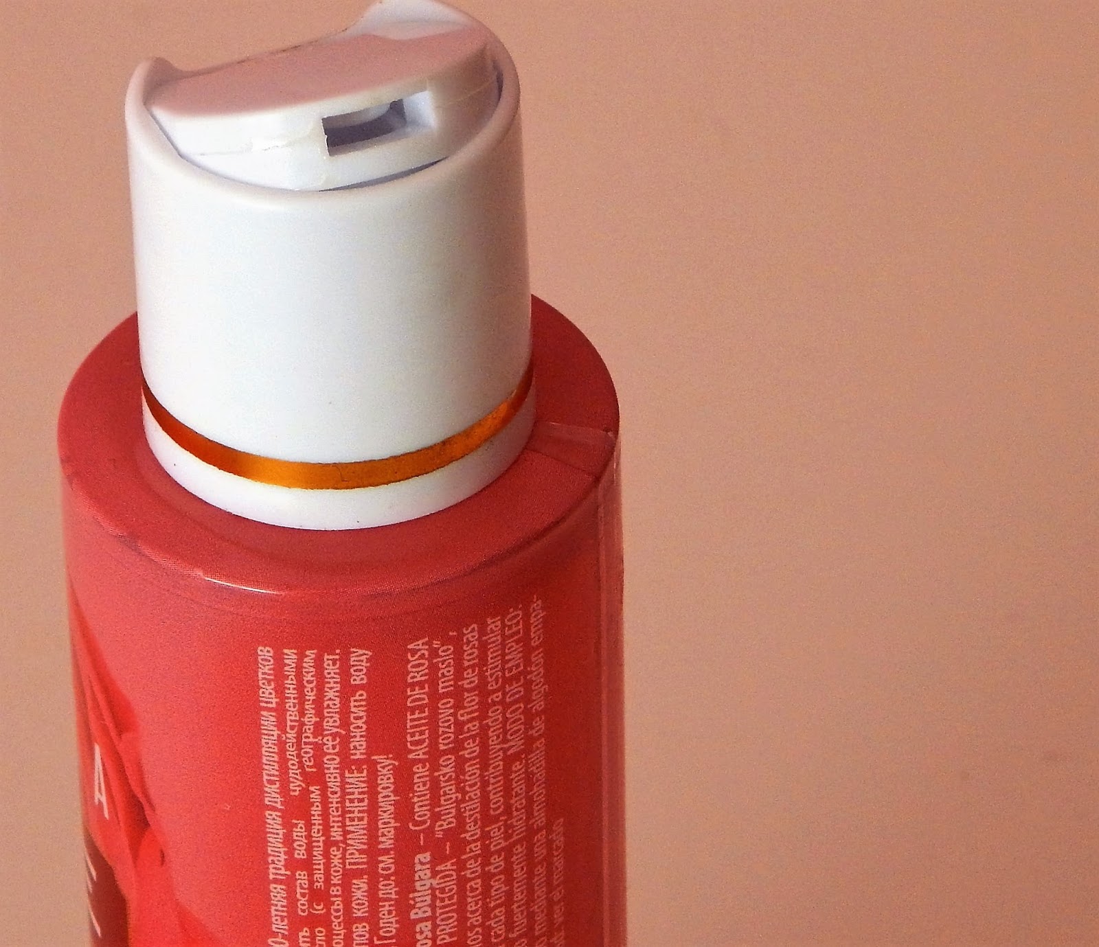 Začnu klasicky hodnocením obalu, který je tématický s obrázky růží. Lahvička je z tvrdého plastu a víčko také. Víčko je odkapávající, není šroubovací, což mi vyhovuje. Akorát