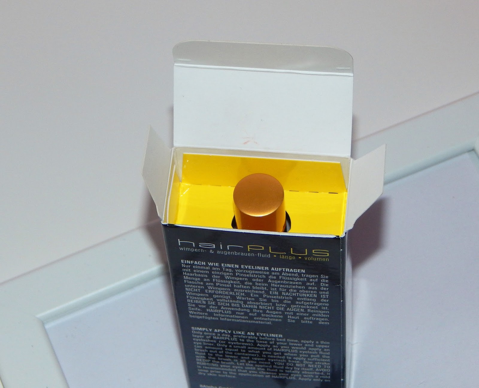 Než jsem sérum poprvé na své řasy aplikovala, tak jsem řasy vyfotila a těšila se na výsledky, kdy budu moct po několika týdnech zaznamenat další fotkou výsledky. Vzhled lahvičky bych popsala pouze v krátkosti 🙂 Není třeba ho zdlouhavě okecávat, dnes to není podle mě moc důležité. Lahvička je v matně černé barvě se zlatým matně-lesklým víčkem. Vzhledově vypadá velice hezky a luxusně. Krásně doplňuje můj kosmetický stolek s produkty,